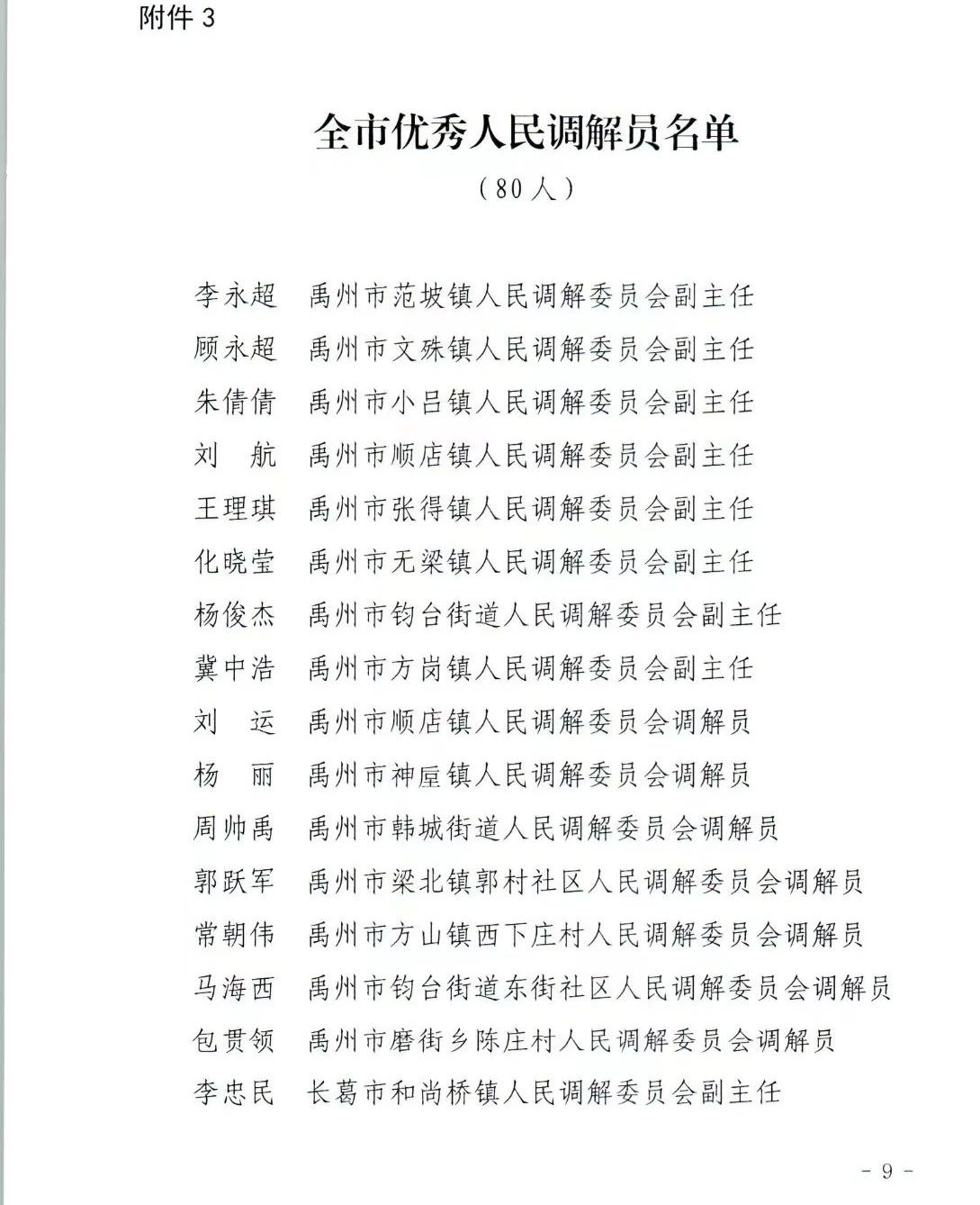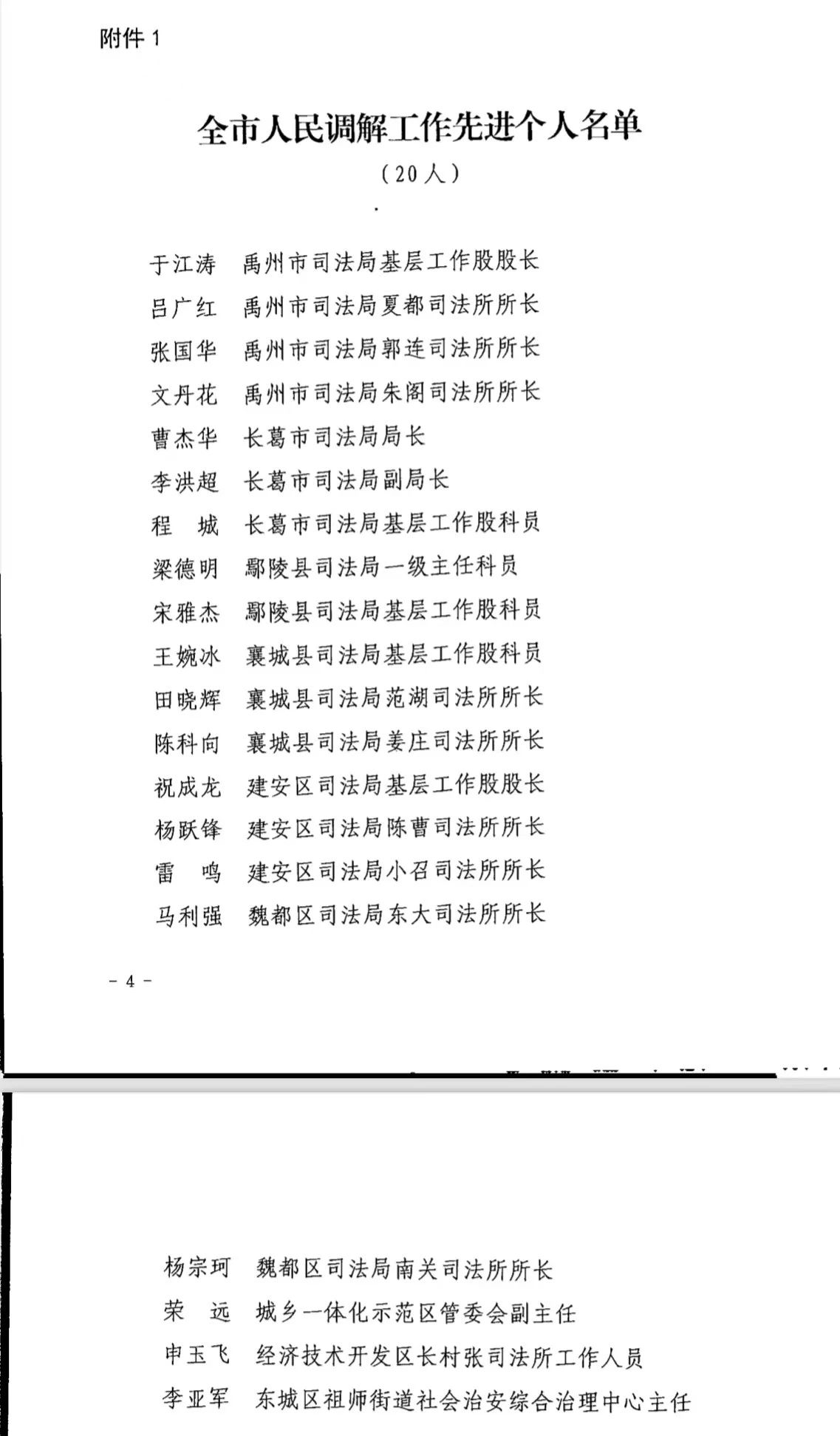 為表?yè)P(yáng)先進(jìn),鼓舞士氣,進(jìn)一步堅(jiān)持和發(fā)展新時(shí)代“楓橋經(jīng)驗(yàn)”,激勵(lì)廣大人民調(diào)解組織和人民調(diào)解員學(xué)習(xí)先進(jìn)、崇尚先進(jìn)、爭(zhēng)當(dāng)先進(jìn),持續(xù)推進(jìn)我市人民調(diào)解工作創(chuàng)新發(fā)展,近日,市司法局印發(fā)決定,對(duì)禹州市司法局基層工作股股長(zhǎng)于江濤等20名全市人民調(diào)解工作先進(jìn)個(gè)人、禹州市古城鎮(zhèn)人民調(diào)解委員會(huì)等40個(gè)全市優(yōu)秀人民調(diào)解委員會(huì)、禹州市范坡鎮(zhèn)人民調(diào)解委員會(huì)副主任李永超等80名全市優(yōu)秀人民調(diào)解員予以通報(bào)表?yè)P(yáng)。