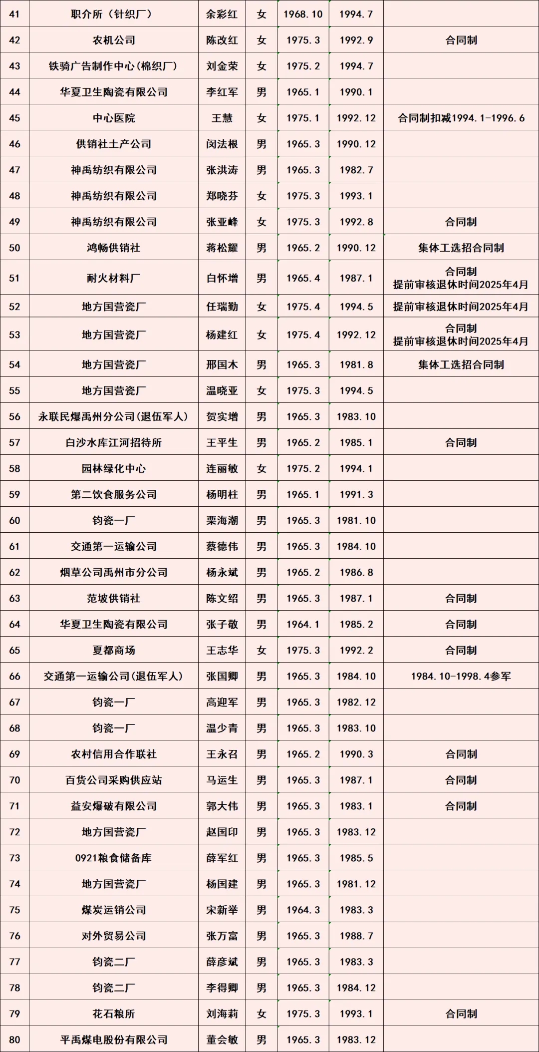 2025年3月禹州市企業有視同繳費申報正常退休人員公示