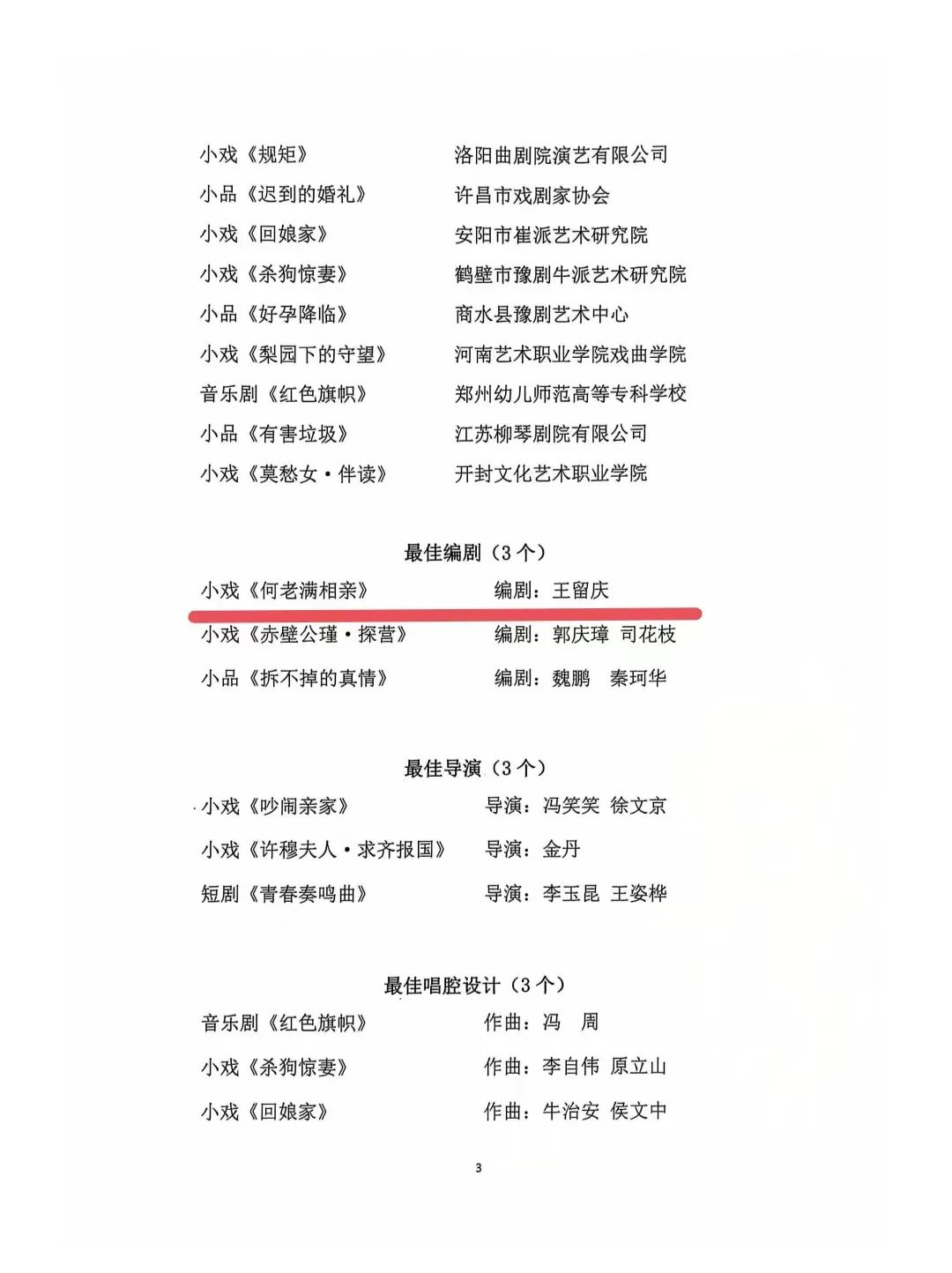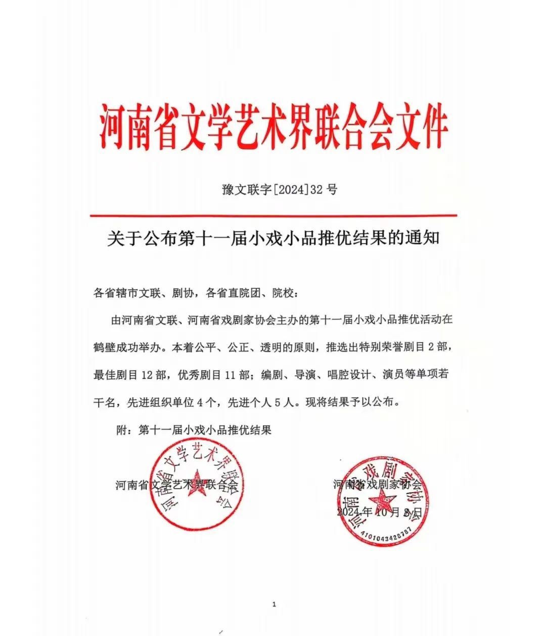 近日,由河南省文聯、河南省戲劇家協會主辦的“河南省第十一屆小戲小品推優大賽”評獎結果公布,禹州市豫劇團原創戲劇小品《何老滿相親》榮獲最佳劇目獎、最佳編劇獎、最佳演員獎、優秀演員獎!