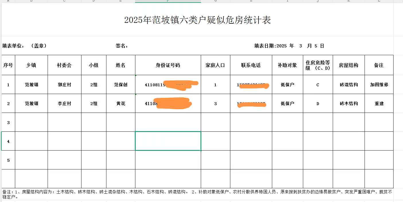 2025年范坡鎮六類戶疑似危房統計